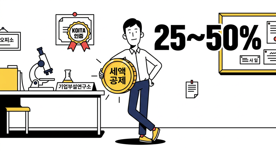 한국산업기술진흥협회(koita)의 인증을 받으면 세액공제가 가능합니다.